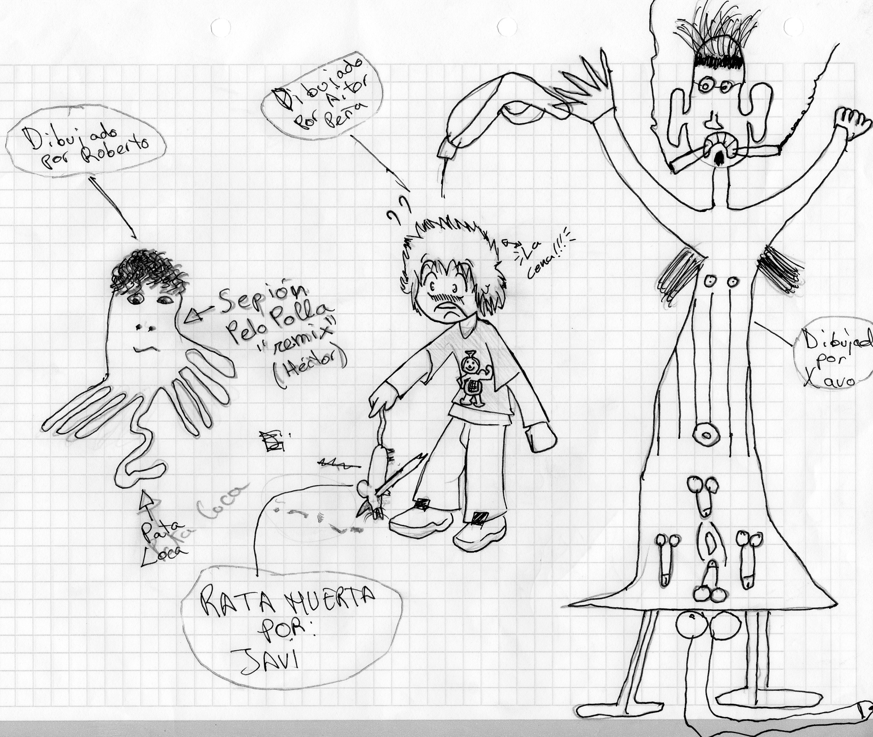 Dibujo mio, yo soy el de el medio, si, Aitor.