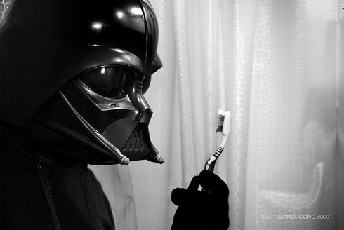Pobre Vader, no puede lavarse los dientes.