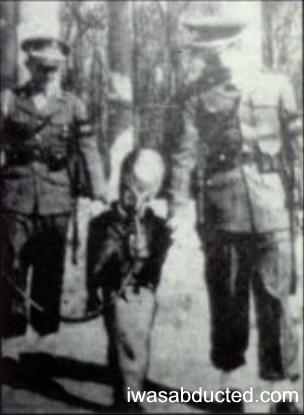 auténtico alienigena de la tipología de los Grises siendo arrestado por el ejército yankee por haber intentado dar un discurso sobre sociología y política marxista