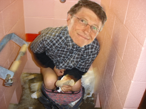 Cabe decir que Bill Gates o Bill Puertas es un idiota que no sabe gastar su dinero por eso es que el gobierno de Estados Unidos no le permitió tener tanto dinero y tuvo que invertirla en fundaciones, y cabe destacar lo que dijo una vez: "nunca desprecies a los mas nerds por que ellos podrían terminar siendo tus jefes" y es verdad lo que bill gates quiere es que todos los nerds se unan a él y unan sus fuerzas para destruir el mundo. Jamas va a acabar de intentarlo. Su inteligencia no le sirve de nada para poderse gastar todo ese dinero.