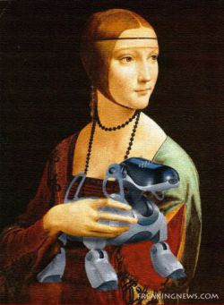 La dama y el Aibo, Oleo en tela