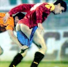 Jugador deteniendo el balón, también conocida como la jugada del Zas en toda la boca