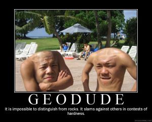 Geodude es el pokemon mas poderoso del universo pokemon y el nuestro tambien claro esta. Brock es el afortunado poseedor de uno ( y lo regalo vaya tío), estos carismaticos seres son rara vez evolucionados (¿para que evolucionarlo si asi ya es demasiado genial?)en el videojuego de cualquier generación (sale en todas)es el pokemon que puede pasar por ti el juego mientras no lo hagas graveler. Los geodudes son los pokemones capaces de enfrentarze a Satoru Iwata una deidad que gusta destruir ala gente y ati que tambien eres gente