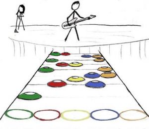 Basicamente, machacarte los dedos, y hacer creer al jugador que esta tocando de verdad. (Se han dado casos de ataques epilépticos gracias a las lucecitas que parpadean y que hacen que no veas una puta mierda los hospitales del mundo entero reciban más pacientes).