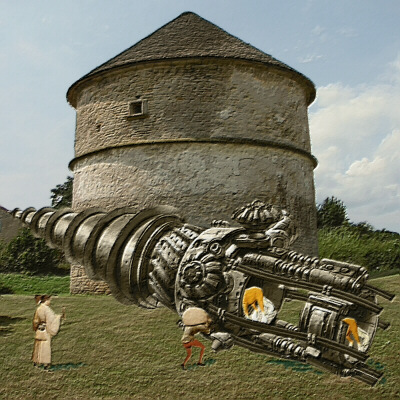 En el momento de su nombramiento como pintor ducal, Bosch fue también muy activo como un experimentador de la invención, y en la capacidad de desarrollar el primer ejercicio, la versión moderna sigue siendo vendida por sus descendientes. Sólo después de su despido en 1492 fue su primera versión, tamaño completo, con martillo, el coloso tenía bekijks: la fuerza motriz era suministrada por un par de caballos de trabajo, la cabina estaba hecha con una gran caja grande de madera de apariencia rústica, donde un complicado mecanismo de aspecto peligroso producía un giro cónico de caracol de hierro que poseía una gran potencia perforadora. Manitas contemporáneos dada la compacidad de las actualizaciones de la versión moderna se puede imaginar que su predecesor tubo una gran cantidad de compradores.