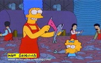 Aquí podemos observar a Marge Simpson trabajando tan felizmente en las Empresas pesqueras de Osaka; a la derecha de la imagen se puede apreciar a Borat trabajando en una piscifactoría de las industrias pesqueras de Osaka.