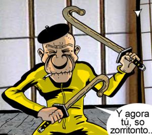 Es el pelado que manda a todos los "88 esquizofrenicos", solo pelea con 2 muletas porque le da miedo pelear con katana por temor a cortarse