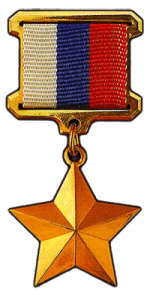 Cruz al Servicio Distinguido(Por distinguirse al matar a 100000 personas con flechasos)- Archivo:Silver Star BAR.svg.png Estrella de Plata con racimo de hoja de roble(Ni el sabe lo que esa medalla significa).