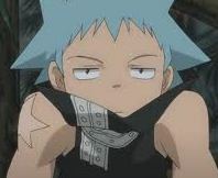 Se la pasa sin saber lidiar con nada, marginado y a medio camino de emo. Se refiere a sí mismo como boku (que llega a ser yo en masculino en japonés), pero como tiene voz de maricón/a, a saber tú. Lo único que se sabe con certeza de esto es que es otro de los esclavos sexuales de Maka. Es el usuario de Ragnarok, una espada-consolador vibrador que tiene pegado Chrona a la espalda. Como Chrona es uke (o neko), el bichejo este se la pasa abusando de el andrógino. Tiene sangre negra, cosa que le sirve mucho para el combate, ya que esta se endurece y toma cualquier forma que Chrona quiera (si, incluso formas guarras, pero debido a su androginicidad, no se sabe si le gusta el fap fap fap o el shick shick shick)
