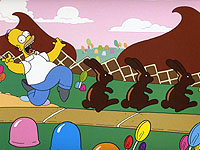 Bueno como podéis observar en la escena Homer ve un mundo absolutamente echo de chocolate y dentro de el puede comer todo el chocolate que quiera, para que este mundo fuese tan siquiera imaginable debemos quitar la figura del ser que no es de chocolate, y en lugar de ella introducir humanos hechos de chocolate, cuyo único objetivo es comer chocolate para crecer, visto desde términos roleros, cada humano tendría un nivel, si un humano se come a otro humano se suma su nivel, por ejemplo tenemos al sujeto A de nivel 4 y al sujeto B del nivel 2, como podréis imaginar el sujeto A tiene una masa igual al doble de la masa del sujeto B, ósea que será mas grande, mas ancho, mas profundo, y mas peligroso para el sujeto B, tras una dura pelea el sujeto A logra comerse al sujeto B, y como consecuencia el sujeto A sube al nivel 6 absorbiendo toda la materia del B.