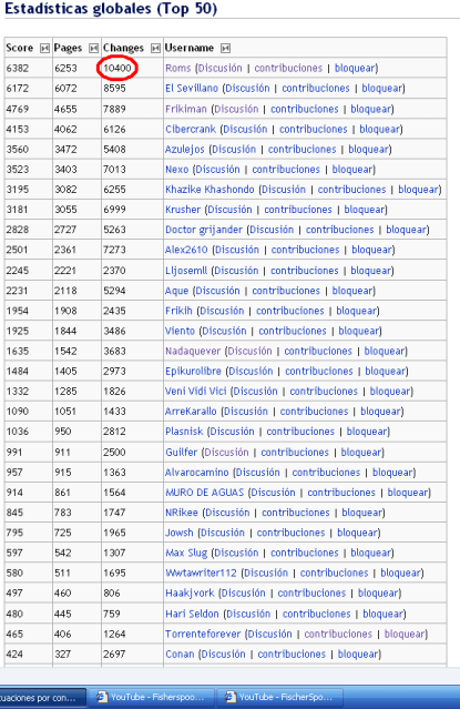 Créanlo o no, en algún momento (20 de Oct. 2007, 16:31 Hora frikipedia) llegue a estar en primer lugar aquí; creo que todos los demás estaban de vacaciones, fueron secuestrados por inciclopedistas o algo así.