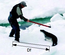 La distancia focal es la distancia entre usted y la foca más cercana, suele estar en continuo cambio de dirección; pero el módulo mantiene un valor cuasi constante mientras que ni usted ni la foca se muevan muy rápido. A veces el módulo varía considerablemente debido a que hay focas que alcanzan grandes velocidades. Esta distancia es muy útil para los cazadores de focas. Como buena distancia que es, se mide en metros en el Sistema Internacional, y se representa con las siglas "Df".