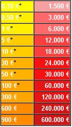 Diferentes premios que se puede llevar el concursante (grabado en una cartulina, claro)